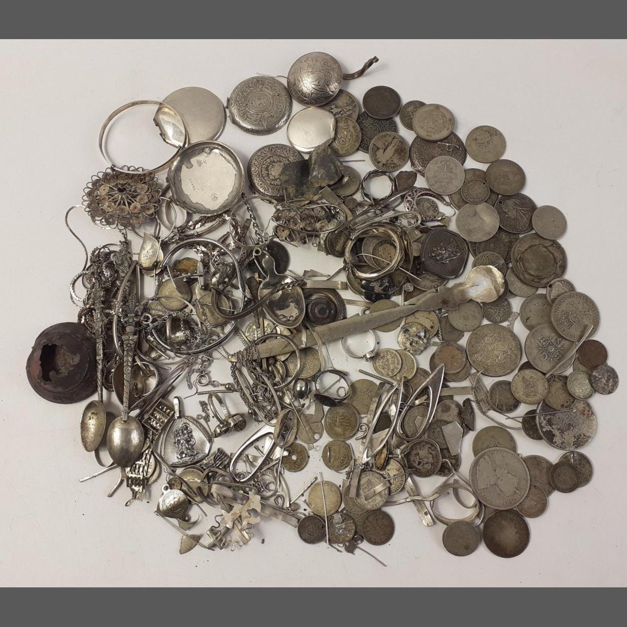 A tray FILLED with assorted silver items including coinage, chains, jewellery, watch backs etc for scrapping or re use. Weighing in at just over a WHOPPING 800g. An exciting mixed lot of various grades but all silver.