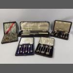 EPNS lot of quality items to include a lovely set of Walker & Hall teaspoons and a dainty cased set of salts with two spoons. Also includes another set of spoons and a carving set.