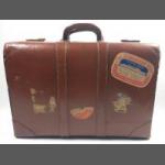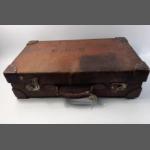 A super old substantial leather suitcase made by ERSKINE & SONS of BELFAST. Catches in good order but no key. A nice useable item that displays well. Sizes 66cm wide. 38cm deep, 18cm high approx.