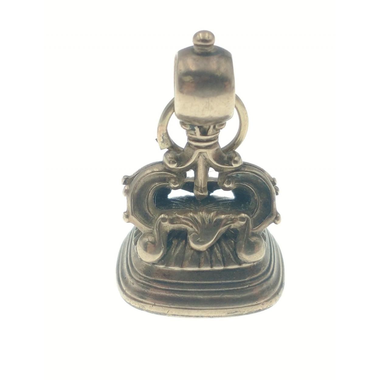 A dinky little unmarked yellow metal Intaglio seal with an unidentified hard stone face with a wheat sheaf motif. Really rather lovely. Gross weight 4.7g approx.