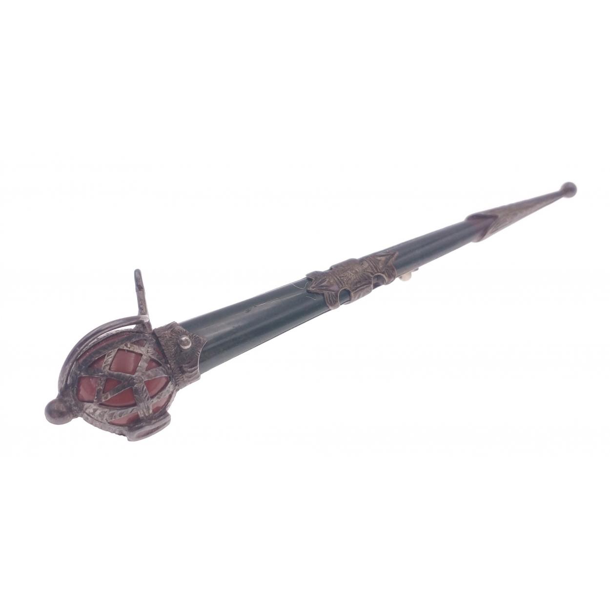 A unmarked white metal VINTAGE SCOTTISH CLAYMORE form pin brooch with deep green and red Scottish agate stones - dimension 8cm length approx