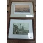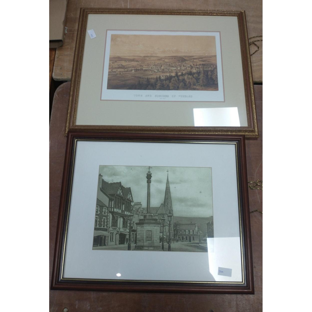 Two framed prints of Peebles. One of Mercat Cross (approx 57cm by 37cm) and other titled 'Town and suburbs of Peebles (From Venlaw)' approx 63cm by 52cm