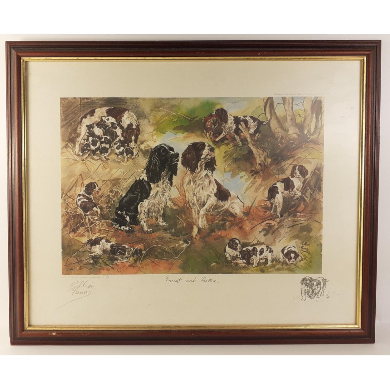 PRESENT & FUTURE by Gillian Cairns print No752/850 of spaniels with a special artist extra pencil drawn pups in the bottom right of the border - dimensions are length 62cm x 51cm height