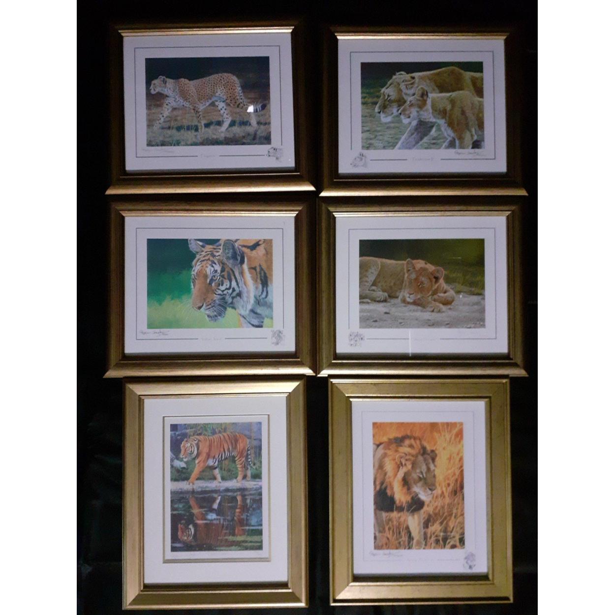 For LOVERS of AFRICAN BIG CATS and TIGERS! Six STEPHEN GAYFORD signed limited prints of lions, cheetah and tigers to include "African Radiance", "Sweet Dreams", "Tenderness II", "Elegance", "Tiger, Tiger" and "Indian Jewel". High quality prints elegantly framed in gilt-distressed wooden frames. Frame size 45x36cm approx