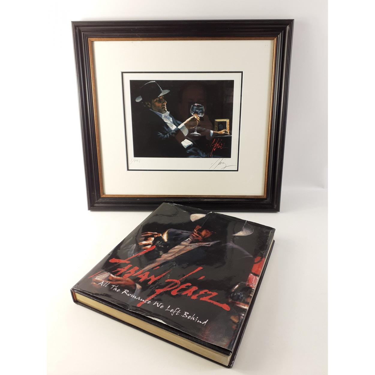 FABIAN PEREZ signed, framed limited edition print. Signed by artist in gallery, print is numbered 1/495. Comes with a SIGNED copy of the hardcover book 'All the Romance We Left Behind'. Purchased with the print the book is a substantial fascinating volume of the artists work and often commands in excess of £150 online. The frame size is 50 x 45 cm and the actual work measures 25 x 19 cm approx. A nice melancholic contemplative subject from a highly collectible artist.