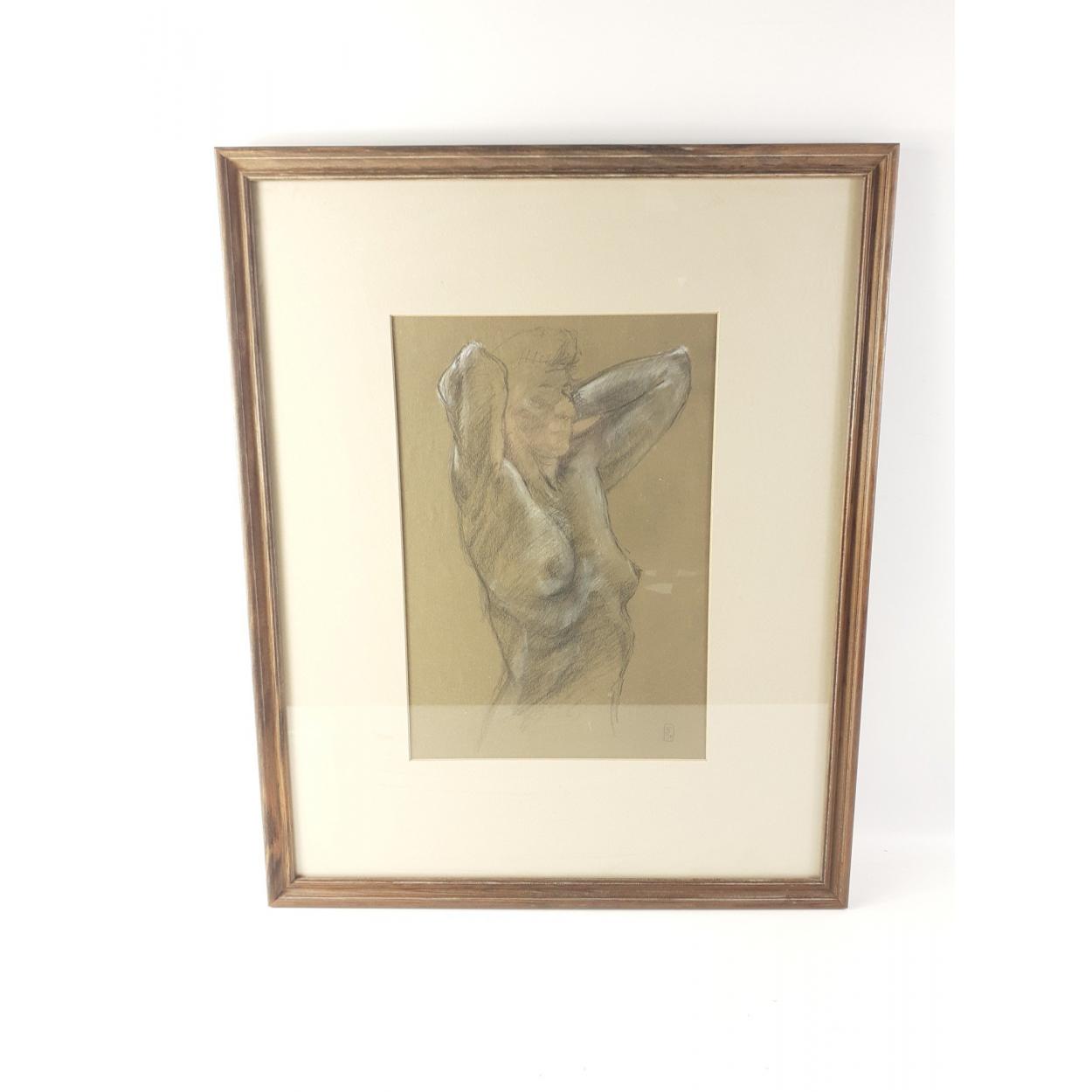 HILARY FORBES Artist. A pencil and charcoal study of a nude. Total frame size 55 x 44cm. Actual artwork 32 x 22 cm