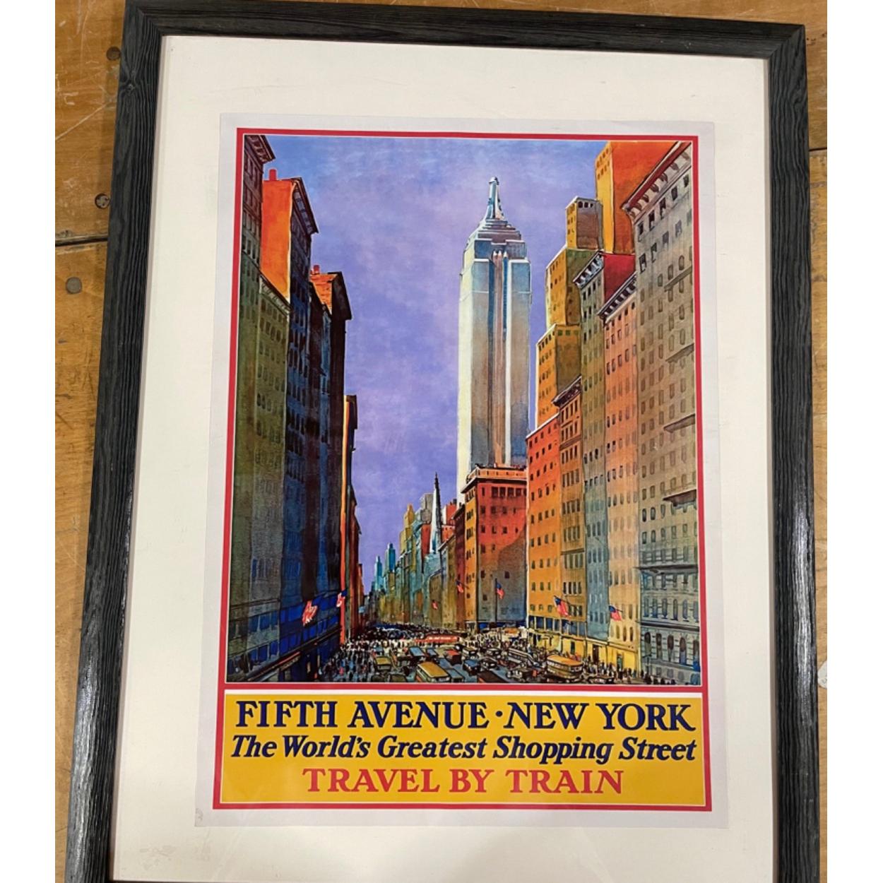 TRAVEL BY TRAIN - FIFTH AVENUE - NEW YORK - The World's Greatest Shopping Street framed poster - 1932 - Travel by train by Frederic Kimball Mizen (1888-1964) dimensions 36" x 28" approx