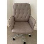 AS NEW CONDITION! A STYLISH modern suede leather style desk chair on a five leg stainless steel base with castors