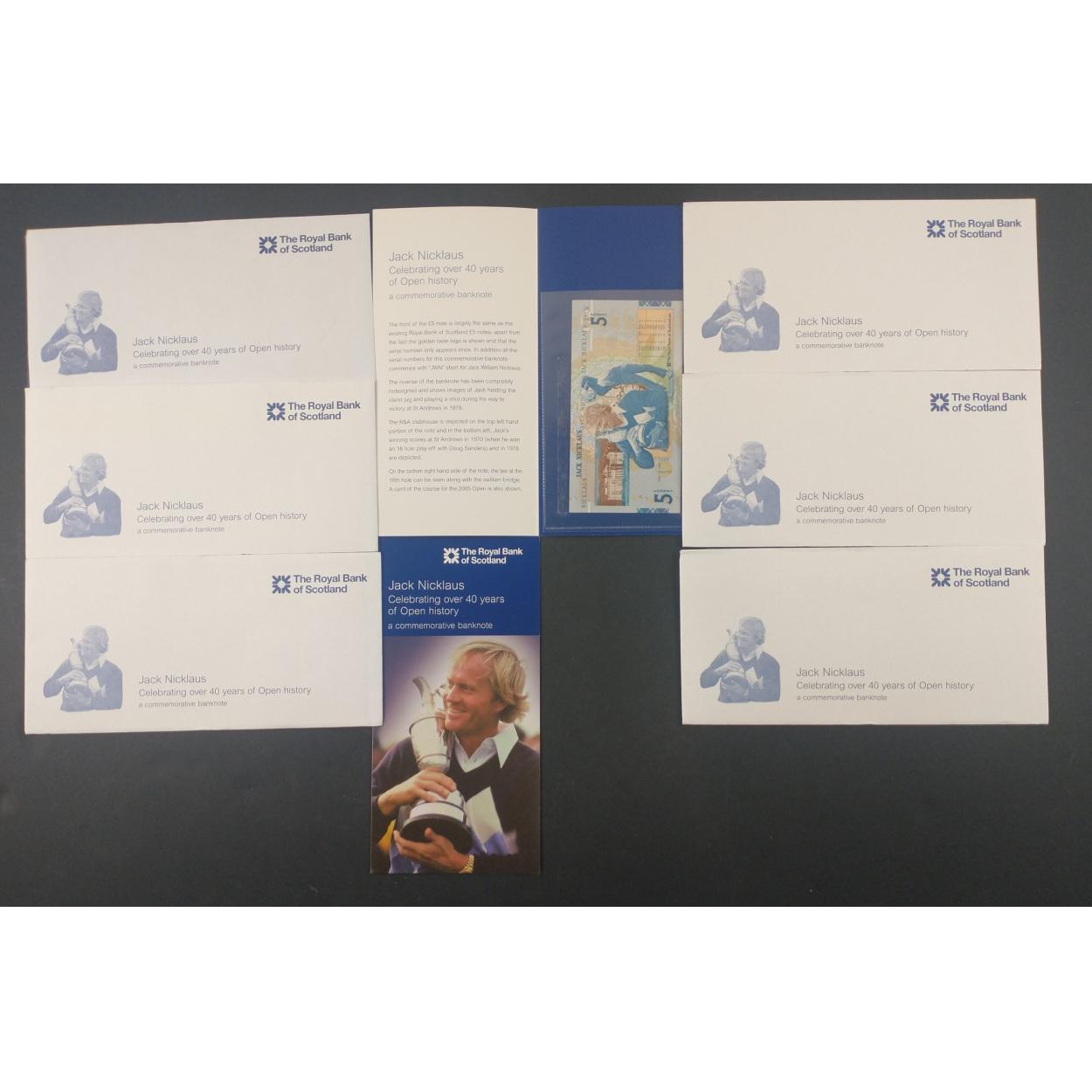 A set of SIX commemorative Royal Bank Of Scotland Commemorative £5 notes still within their sleeves - in mint condition!