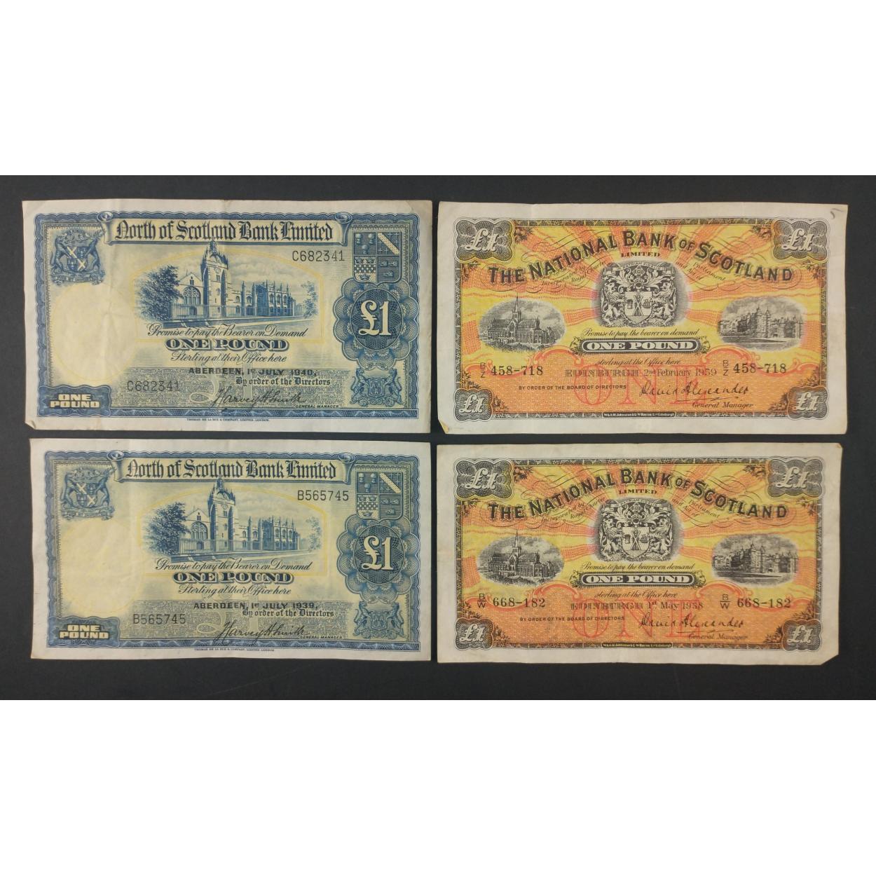 Four old SCOTTISH BANK NOTES to include two The National Bank Of Scotland £1 notes 1959 and 1958, Also two The North Of Scotland Bank LTD £1 notes 1939 and 1940 - all in good condition!