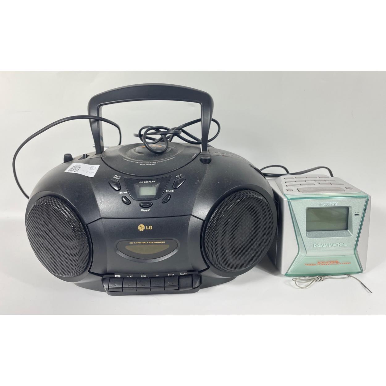 A SONY ICF-C153L DREAM MACHINE clock radio and an LG (model CD-323) CD-/RADIO/CASSETTE player