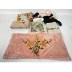 Reminders of a more elegant time when ladies wore gloves as a norm comprising 13 pairs of gloves including some for evening wear plus some hand-embroidered work including 2 charming pictures ready for framing