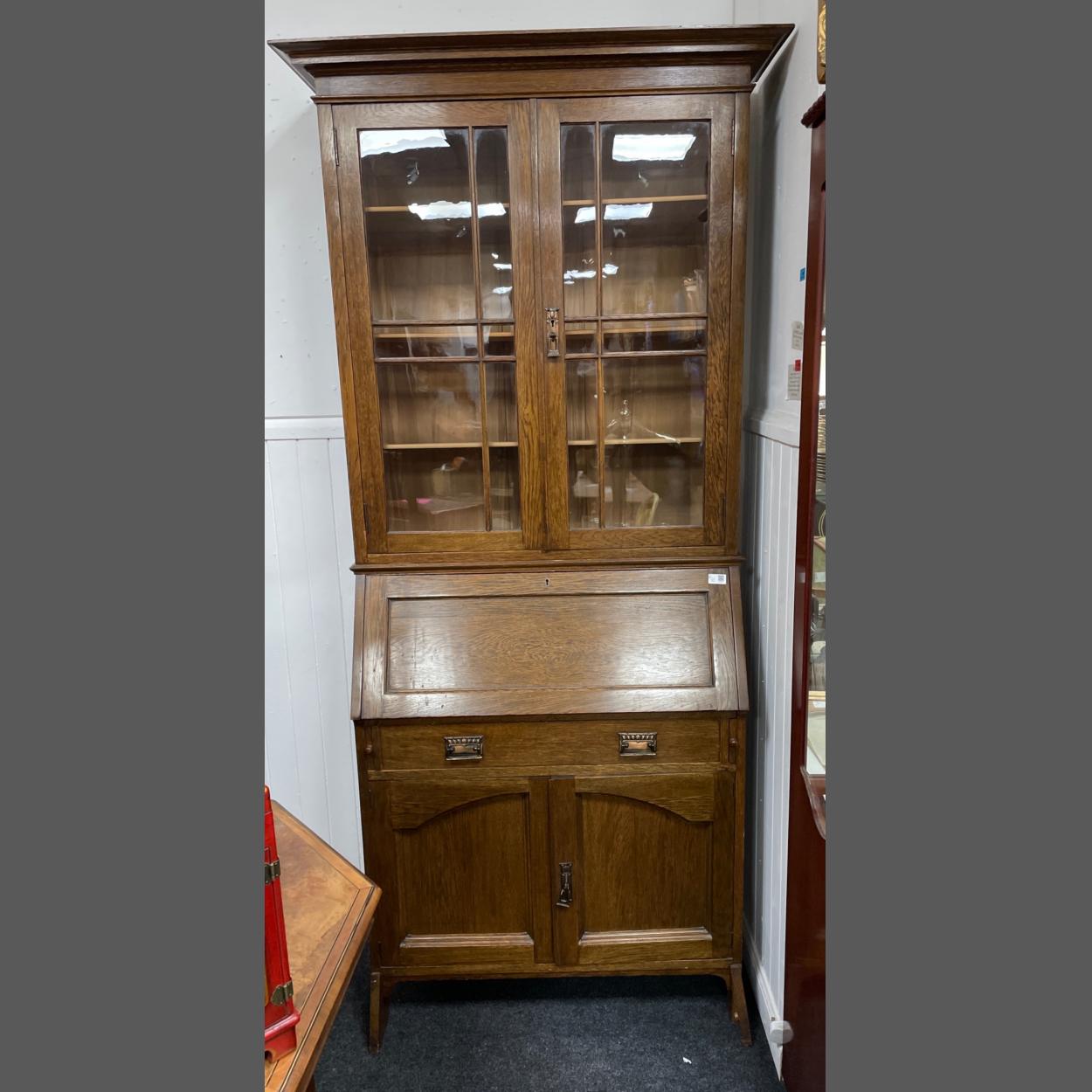 An IMPRESSIVE late Georgian/ early Victorian half door astral glazed corner display cabinet with key - dimensions 7ft tall x 3ft wide x 2.5ft depth approx