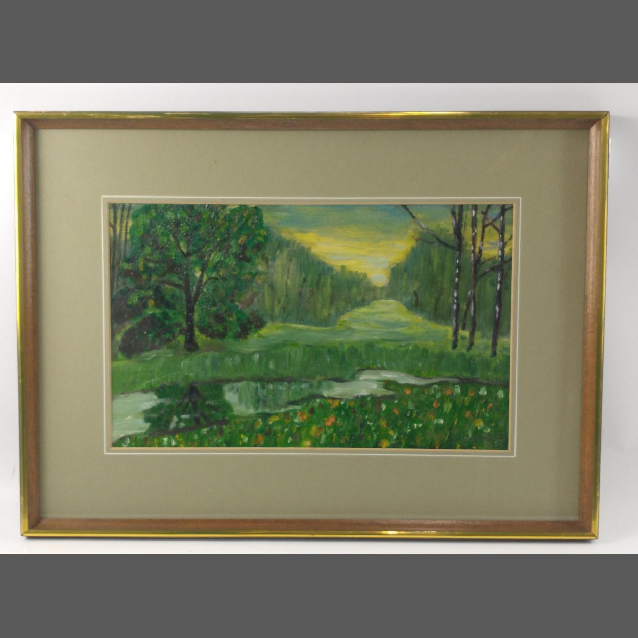 A framed oil on board Landscape signed (indistinct), frame size 56x42cm, visible work 39x24cm