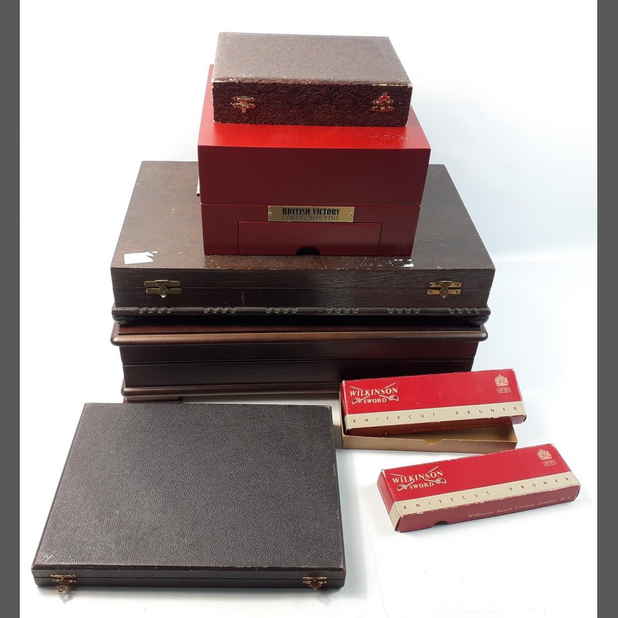 A quantity of useful empty cutlery boxes and one collector's display box