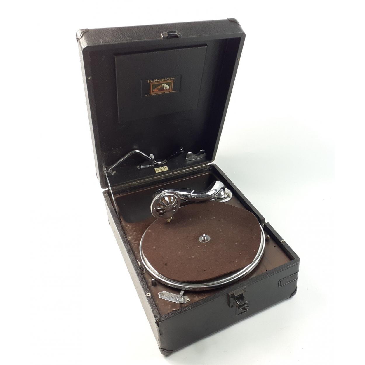 A portable His Master's Voice gramophone with winder from ACOTTS - The Music House, Oxford