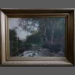 VINTAGE! An oil painting on board by A GARDNER of a riverside scene, oak frame size 57x47cm, visible work 37x27cm