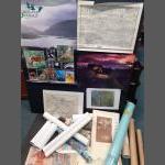 A collection of prints and posters, some educational e. g. flora and fauna, some advertising material, some old maps e.g. Kent 1612 and also one of the environs of Edinburgh, a set of 6 engravings presented by Iberian Airline, a set of prints about the Etruscan civilisation etc