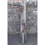 A large and imposing antique hand-pump mounted on substantial wooden board, standing 1.8m tall. Embossed lion head and LION stamp. Impressive decorative item