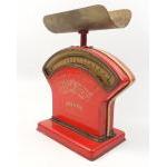 A set of Salter No 30 postal scales, display well in red. Stands 23cm high