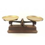 A set of balance scales with 2 x 20cm brass pans marked FORCE 5 KILOG, 40cm at base