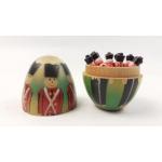 A set of nine skittles - vintage hand-painted Nutcracker Suite wooden soldiers inside a nesting egg stands 11cm high