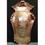 A large beaten and pressed scrolled antique company wall advertising sign from the LIVERPOOL & LONDON & GLOBE INSURANCE COMPANY LTD founded in 1836 (now known as the Royal & Sun Alliance). This magnificent piece was saved by the vendor's grandfather who worked in demolition. Measures 80 x 130cm approx