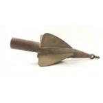 An antique rare and impressive Royal Artillery officer's mess table centre piece shell holder, 28cm diameter, shell aperture 105mm with applied RA cap badge, A beautifully made piece in lovely uncleaned condition