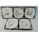 Five boxed attractive embossed ROYAL WORCESTER 'Birds of Dorothy Doughty Dessert Plates' including Gold Crests, Long-tailed Tits, Wrens, Lesser White Throats and Nightingale, each 23cm dia