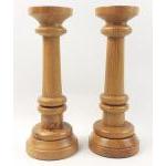 PEEBLES INTEREST - A pair of beautifully turned wooden candlesticks by PETER NORRIS of Peebles, each 26cm high, in lovely condition