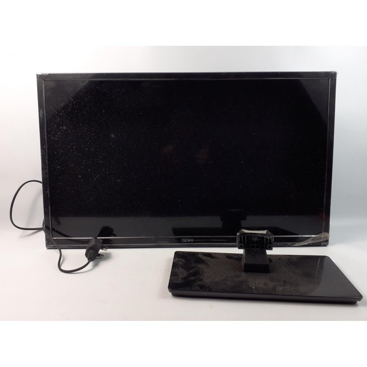 A boxed 32" flat screen panel SEIKI TV with stand, no remote control