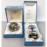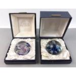 Two boxed STRATHEARN paperweights. Both in good condition, slight staining to satin in one box.