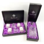 A boxed EDINBURGH CRYSTAL whisky decanter with golfball stopper, a boxed set of 6 small EDINBURGH CRYSTAL whisky tumblers