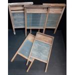 Collection of 5 washboards. 4 glass and 1 metal