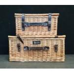 Two Regency Hampers wicker baskets with leather fastenings, measuring W50 x H24 x D37cm and W41 x H21 x D31cm approx