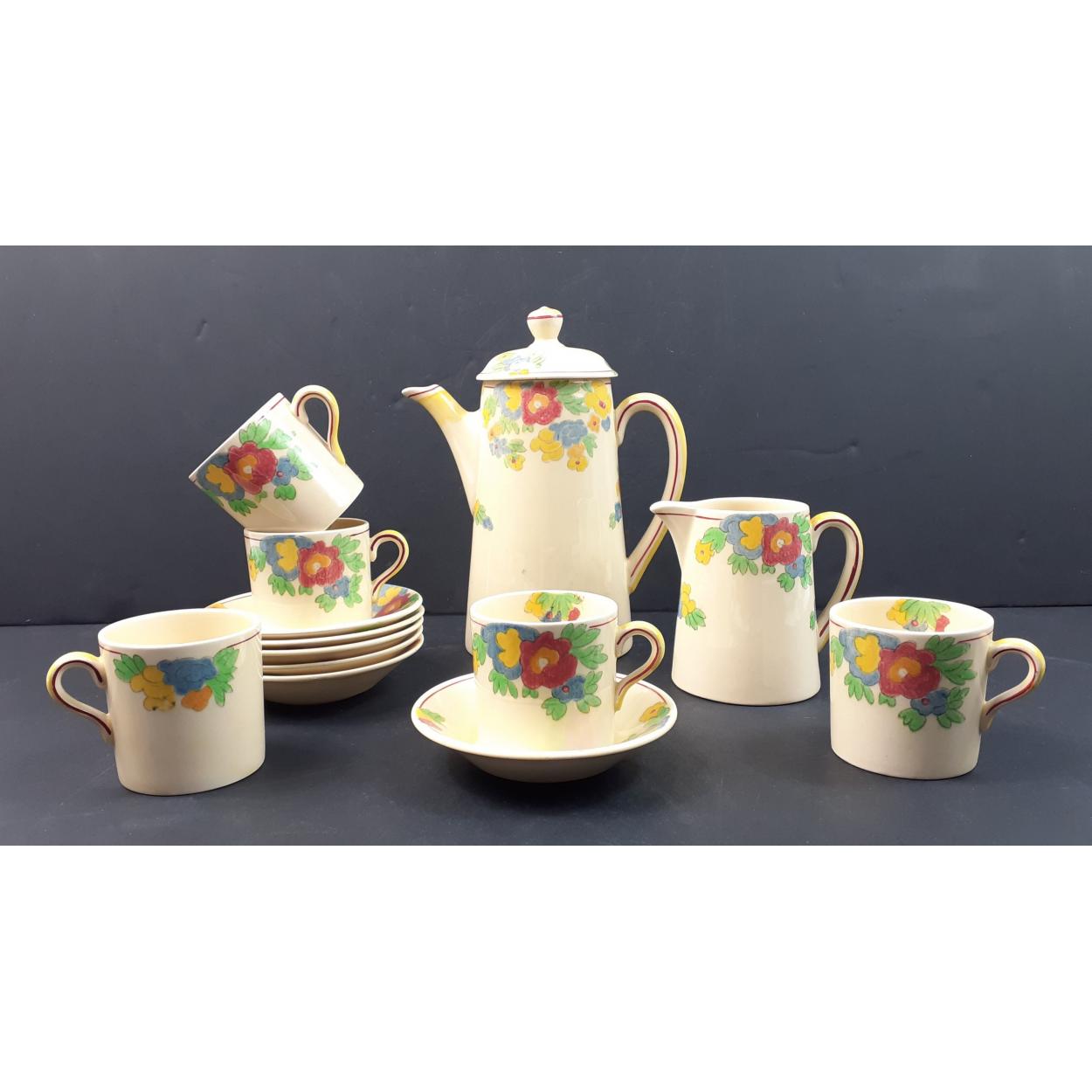 A very pretty yellow and floral pattern ROYAL DOULTON Minden pattern coffee set comprising coffee pot, milk jug and five cups with six saucers.
