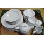 A modern white DENBY dinner service to include 8x27cm plates, 7x19cm plates, 4x18cm bowls, 4 teacups and saucers, cream and sugar and 1 teapot, a couple of minor chips noted