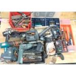 A mixed quantity of tools to include a power sander, drills. Much of interest