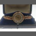 An ANTIQUE 375 stamped yellow gold watch case with a 9ct stamped yellow gold bracelet gross weight 21.40 g approx - all within its original jewellery box