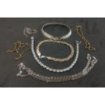 SILVER ! A star of David silver ring, a silver flat link chain two small lockets. Total eight 23.5g. Also a 9ct gold crucifix with applied silver christ (1g approx)