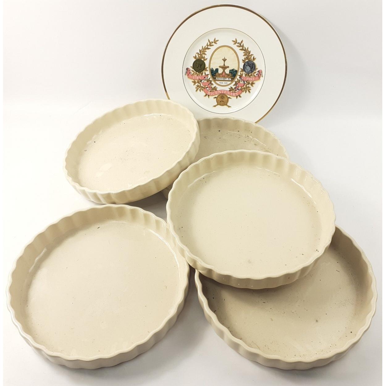 A WEDGWOOD SCHWEPPES BI-CENTENERY 1783-1983 commemorative plate 27.5cm diameter - in good condition - also 4 stoneware flan dishes, dimension each 28cm - good quality!