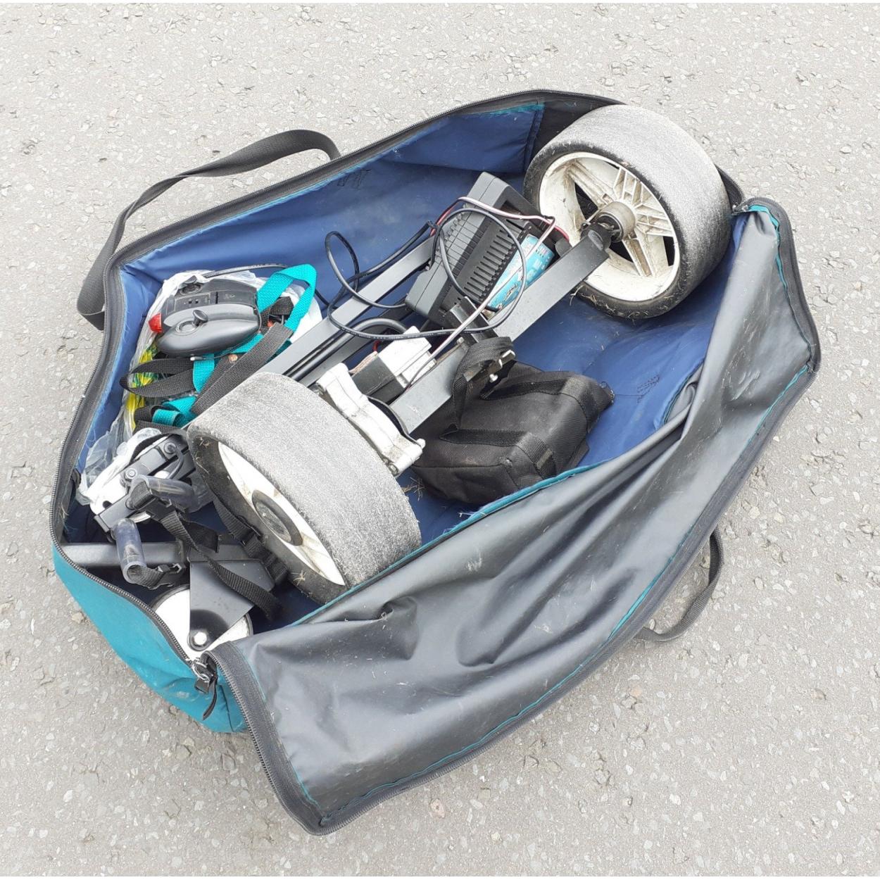 A POWACADDY top cart with battery charger and remote in used condition. Untested.