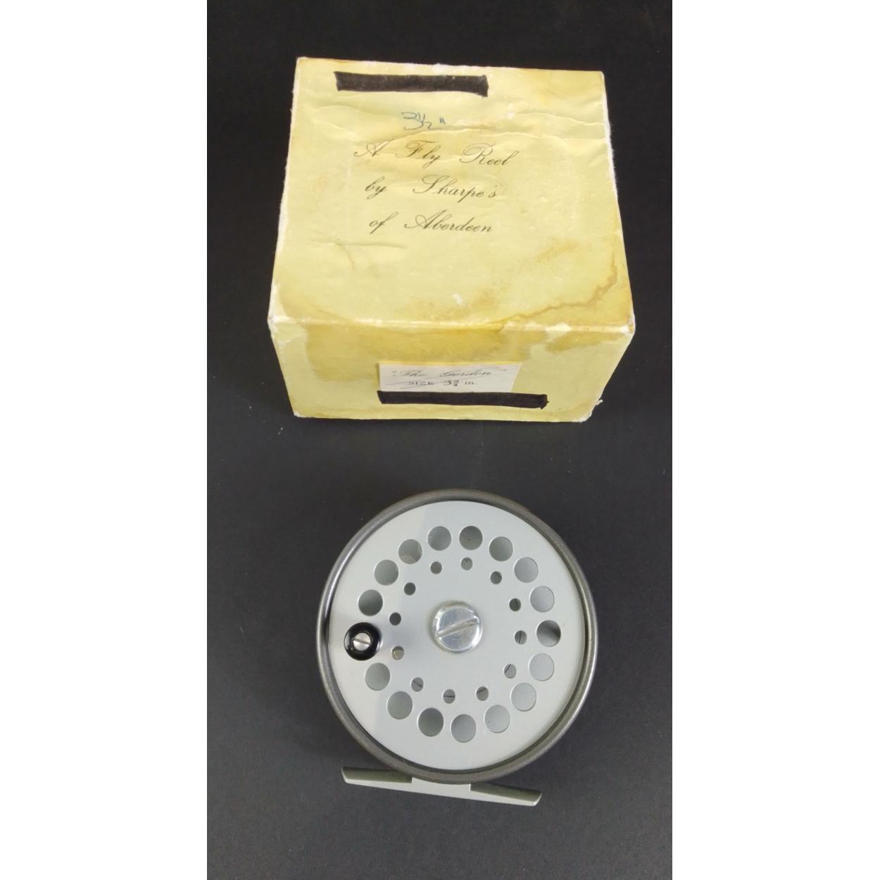 A Sharpe's of Aberdeen fishing reel named 'The Gordon' 3½ inch. In lovely condition in a box