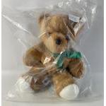 A REAL SOFT TOYS branded soft and cuddly teddy bear with green bow - in original sealed poly bag and an unused item - 31cm length approx