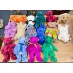 A collection of 15 TY BEARS all with ear tags intact, each approx 35cm tall, to include Millennium, Erin, 3 x Teddy (2 burgundy, 1 teal), 1999 Holiday Teddy, Chilly, Peace, Fetch, Peanut, Periwinkle, Jenkins, Lilacbeary, Peking and Digger