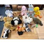 A box of mixed soft toys to include Easter Bunny by Harrods, Gregory by Russ, a rabbit Patamate, a Girlie Posh Paws, a Tweetie Bird, and others