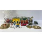 A box of plastic toys including some PLAYMOBILE pieces. A nice lot, fun to sort through.