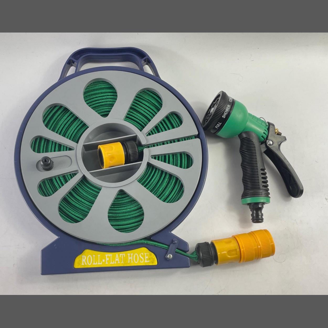 An unused ROLL FLAT HOSE useful for both garden and caravan, comes with a multi-purpose nozzle
