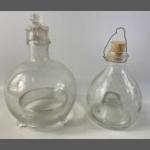 Two Victorian glass fly-catchers, the taller 21cm tall sits on 3 ball feet. The other is dual purpose and can be used for either flies or minnows
