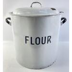 A large ANTIQUE white enamelled FLOUR bin - dimensions 38cm tall x 35cm diameter approx